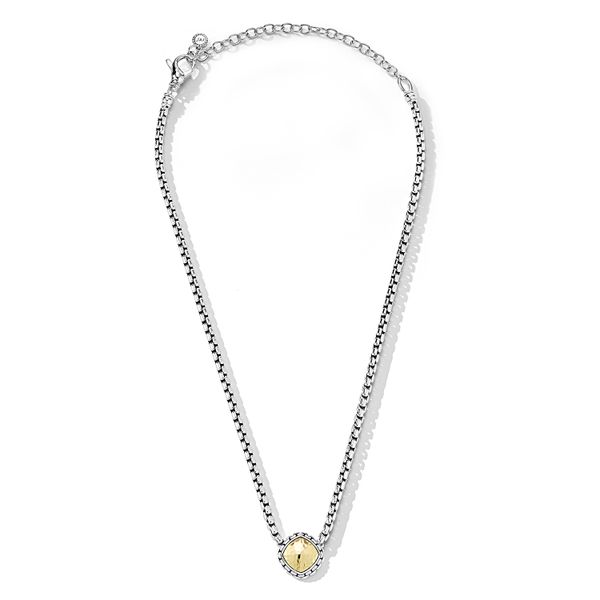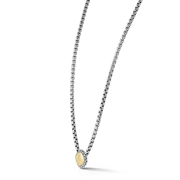 JAI Sterling Silver & Gold Box Chain Necklace with Hammered Pattern Center Image 2 Diamond Source Jewelers Greenwood Village, CO